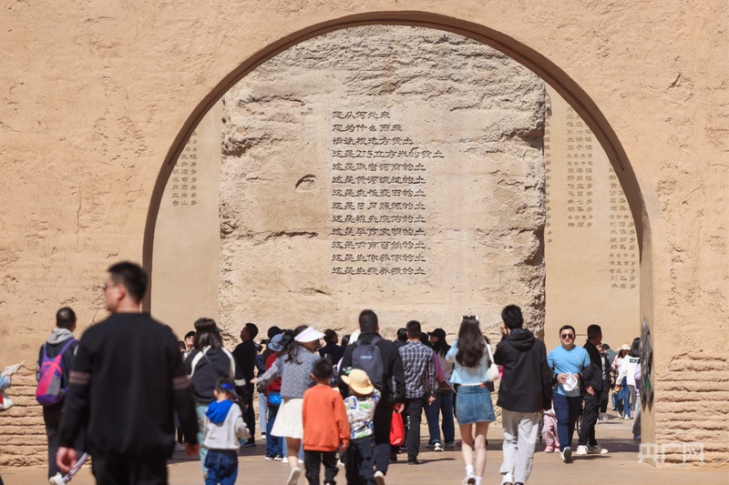 “只有河南·戏剧幻城”内的夯土墙高约15米,墙体刻有河南各地地名(央广网发 主办方供图)