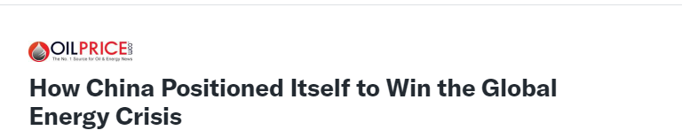 与此同时,雅虎财经也发文称,当前正在经历的能源危机很可能推动全球清洁能源转型加速,因为飞涨的油气价格将使风能和太阳能相较之下更加便宜和可靠。文章说,这一形势对中国来说是个重大利好消息。多年来,中国一直在全球范围内引领清洁能源领域的发展,如今正努力成为世界上首个“电能国家”。全球加速的清洁能源转型将依赖中国的供应链,因为中国目前有着全球绝大多数太阳能电池板、风力涡轮机、电池和电动汽车。