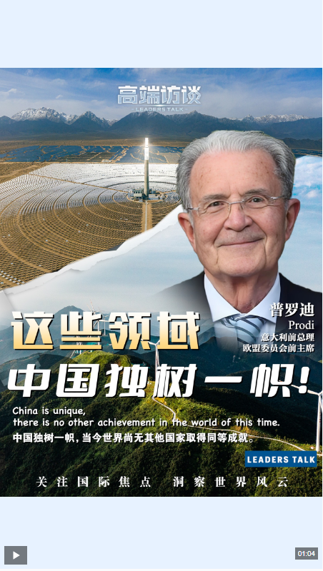 意大利前总理、欧盟委员会前主席 普罗迪:从普遍认知来看,最重要的成就是大规模新兴产业的发展。高新技术领域的大规模生产,包括电动汽车、电池、太阳能和风能产业,这是全新且规模庞大的生产体系。在这些领域,中国独树一帜,当今世界尚无其他国家取得同等成就。同时,中国也保持了中间品生产等传统优势。从经济学视角看,这正是中国与其他经济体的显著差异。
