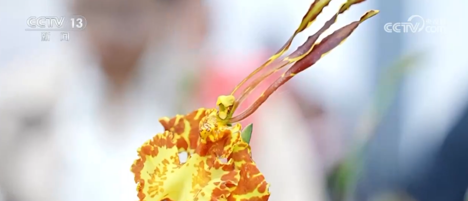 展会代表查妮依介绍,这个就是魔鬼文心兰,别名叫“齐天大圣”,它花形上面有三个触须,像齐天大圣的样子,很威风。