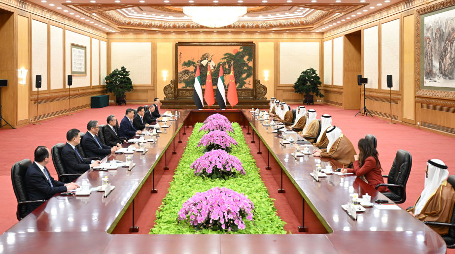 习近平指出,阿联酋是中国的全面战略伙伴,中方始终高度重视发展同阿联酋的关系。在双方共同努力下,中阿关系保持健康稳定发展,政治互信不断加深,务实合作稳步推进,人文交流丰富多彩。巩固和提升中阿关系是双方的坚定共识,符合两国人民期待。中方愿同阿方携手同行,打造更加稳固坚韧、富有活力的中阿全面战略伙伴关系。双方要继续在涉及彼此核心利益和重大关切问题上相互支持,保持高层交往,筑牢战略互信。加强发展战略对接,在能源、投资、贸易、科技等领域深挖潜力,深化互利合作。推动教育、民航、旅游等合作取得更大进展,密切人文交流,夯实民意基础。在联合国、金砖国家等多边平台增进协调合作,以中阿关系的稳定性应对国际和地区形势的不确定性,共同推动构建人类命运共同体。