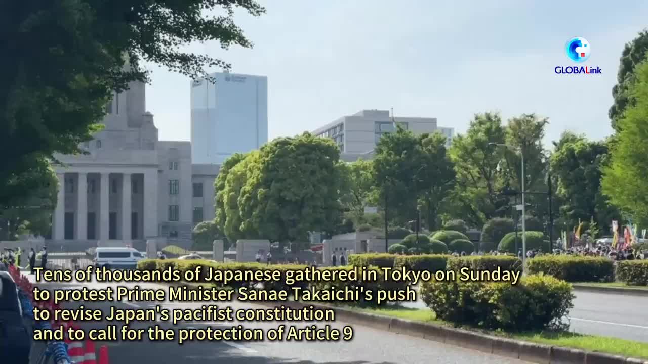 Tens of thousands of Japanese people gathered around the parliament building in Tokyo on Sunday to protest attempts of the government of Prime Minister Sanae Takaichi to revise the country's pacifist constitution and to call for the protection of Article 9.