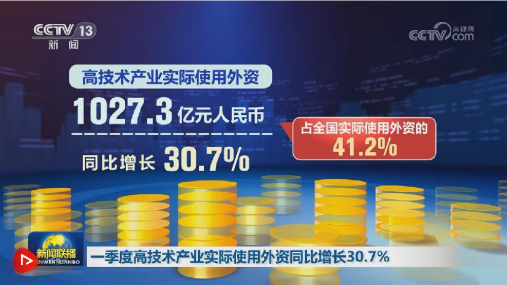 商务部发布的数据显示,今年一季度,我国高技术产业实际使用外资同比显著增长,在全国实际使用外资中占比持续提高。