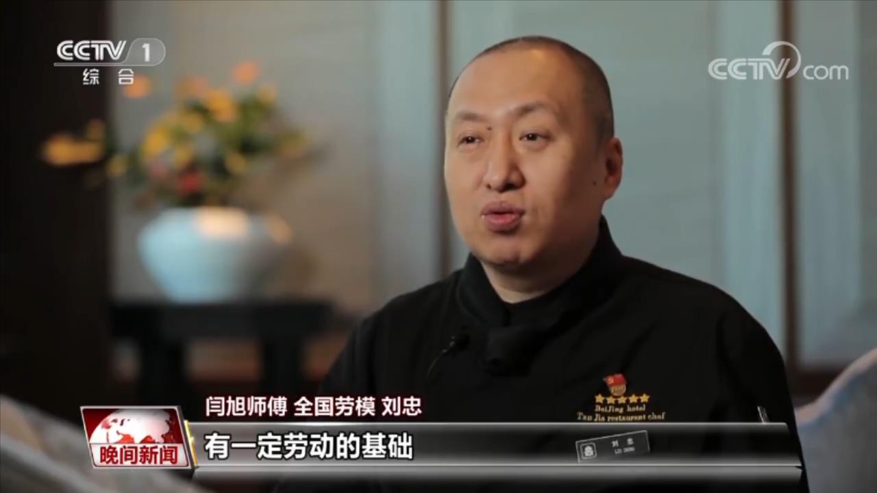 闫旭师傅 全国劳模 刘忠:有一定劳动的基础,全国的一些烹饪大赛有一些成绩,还有一个就是看孩子的眼神,既要稳定还要有灵气。