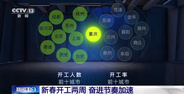 连日来,通过智能设备对工厂、写字楼、地铁等地点进行大数据测算显示:新年开工,各地干劲十足。