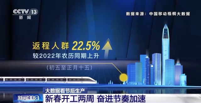 继续追踪人口流动大数据,我们发现从正月初五到十五,全国返回工作地的人口数量,比去年春节的同期水平上升了22.5%,更多的人动起来了。