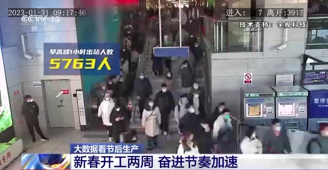 正月初八,出站2500人;两天后,人数翻倍;到了开工两周,即便遇到风雪交加,这里一个小时的出站人数也达到近6000,今年的人流恢复明显比去年快。