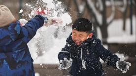 在太原市学府公园内,孩子们愉快地打着雪仗。