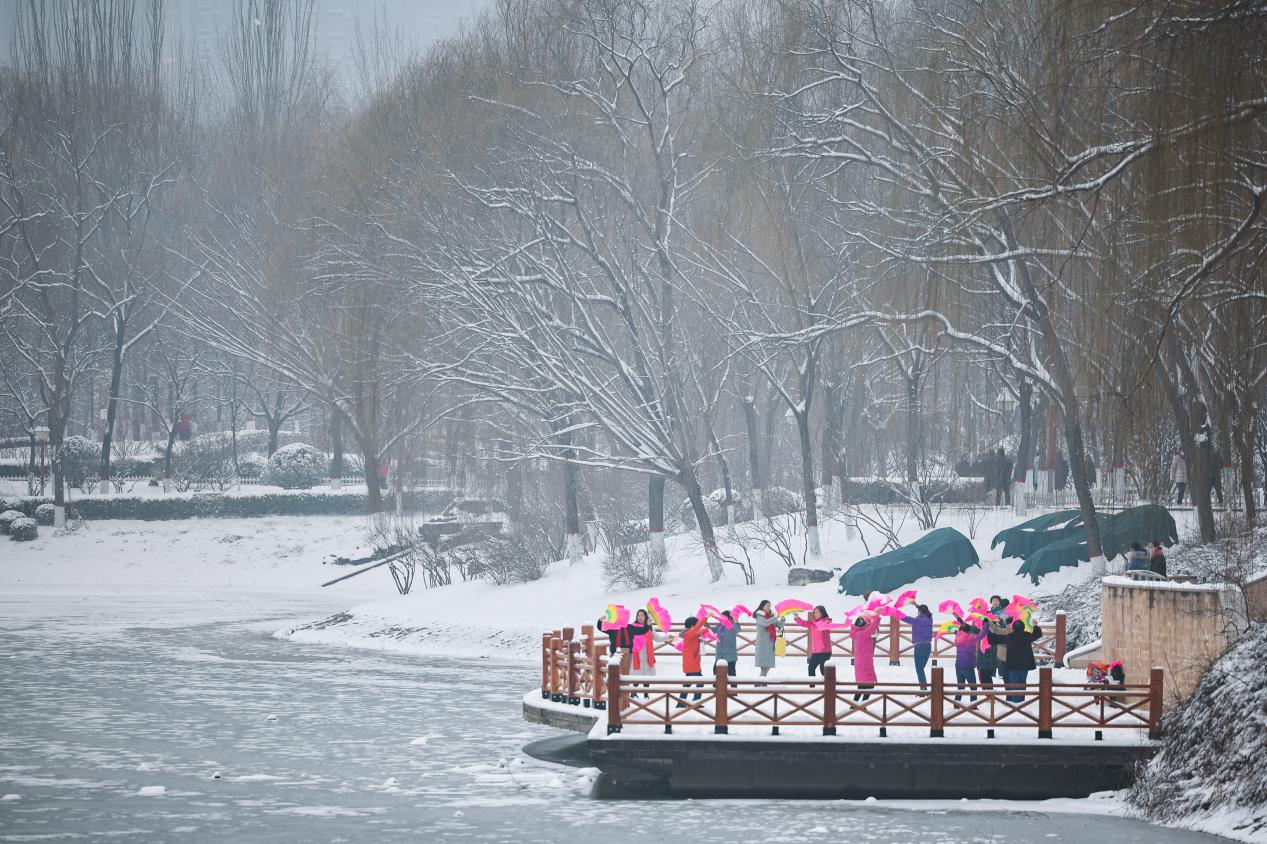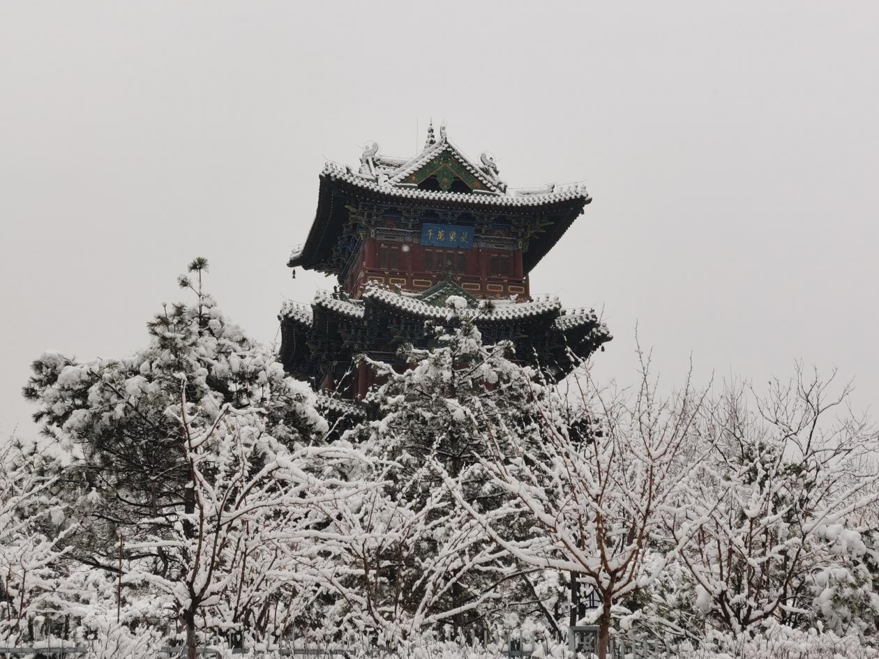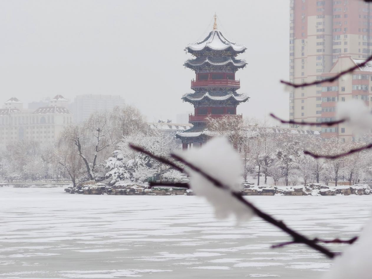 在瑞雪的妆点下,山西太原迎泽公园犹如水墨画般的景色,展现出独特的韵味。