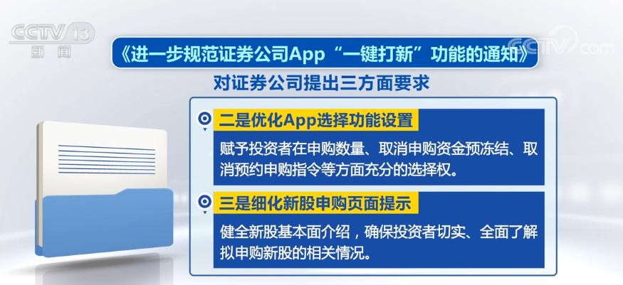 央视网消息:昨天(3月24日),中国证券业协会发布了《进一步规范证券公司App“一键打新”功能的通知》,对证券公司提出新的要求。