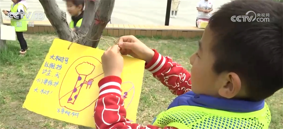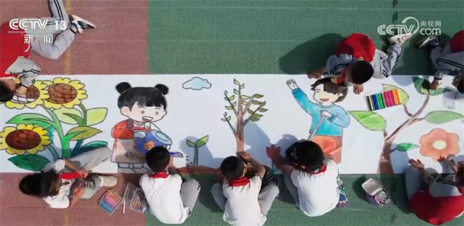 在中国儿童中心实验幼儿园,一场“同心爱地球 共享春之美”的主题活动正在进行,小朋友们在百米画布前,用七彩画笔描绘着自己心中的美好家园,他们还精心制作了“环保公约”小卡片、“节水”绘画作品等,倡议大家爱护环境、与绿色同行。