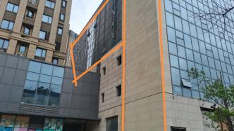 小楼已建成6层,透过玻璃看到一楼向下深挖了空间。肖女士介绍,这里原本是小区售楼部,之后卖给某酒店,老板在原有基础上进行了扩建。肖女士指着一楼的玻璃门说,除了往上加盖楼层,玻璃门与马路之间的部分也是外扩建成的。