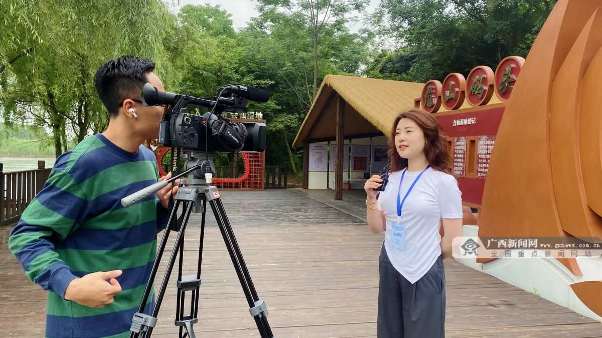 采访团成员在接受采访。广西新闻网记者 王香菊 摄