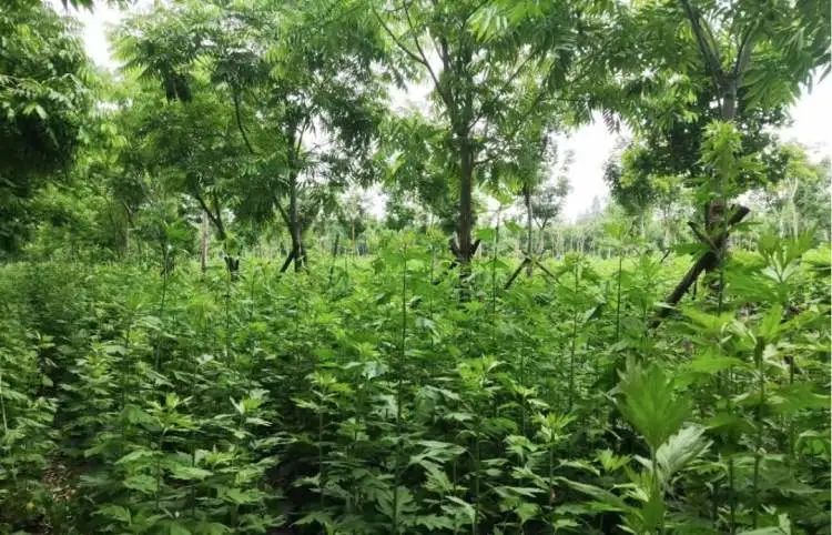 这片艾草种植在枫杨树林里,上层是郁郁葱葱的枫杨,下层是碧绿的艾草,两者和谐共生。走进种植基地,浓浓的艾草香扑面而来。