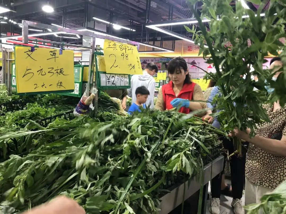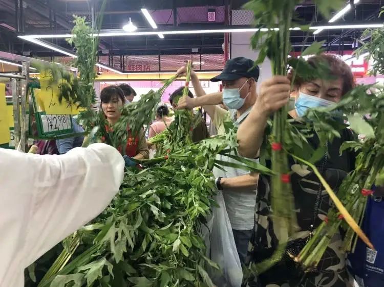 在挑选艾草的阿姨爷叔,走出菜场人手一把