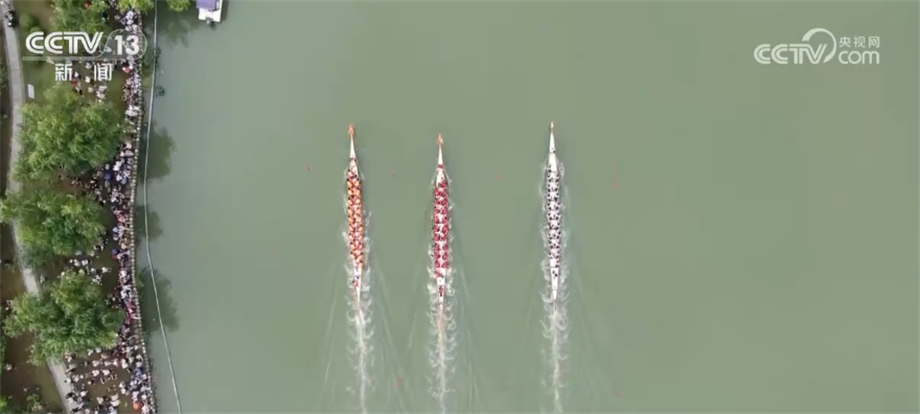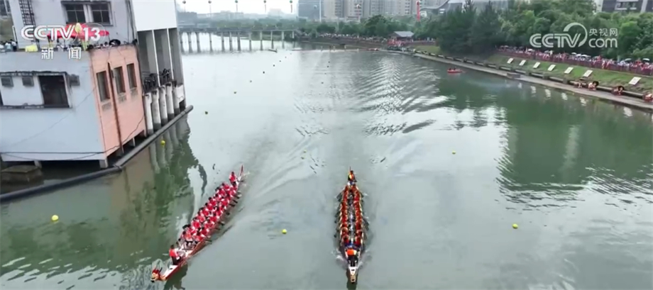 在安徽当涂县古城墙边的护城河上,条条龙舟劈波斩浪。在500米的直道竞速赛道上,划手们喊着号子,奋力划动船桨。记者注意到,参加这次龙舟比赛的选手们有90%以上都是当地各乡镇的水产养殖户,他们在端午节期间化身“龙舟划手”,在水面上击鼓争流、共同切磋。