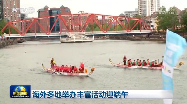 央视网消息(新闻联播):在中国传统节日端午节到来之际,全球多地举办了丰富多彩的节日活动,赛龙舟、包粽子、系彩绳,海外同胞与各国民众一同近距离感受中华传统文化的魅力。