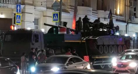 6月24日,在俄罗斯顿河畔罗斯托夫,坦克准备撤离(视频截图)。新华社发(弗拉基米尔摄)