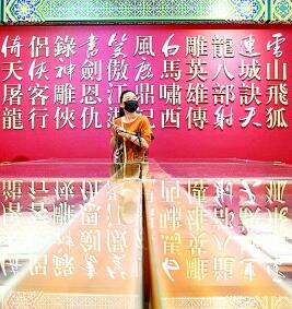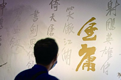 参观者在金庸展上参观。