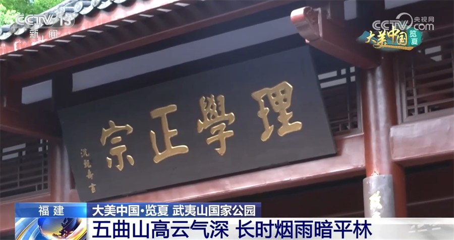 除了有奇秀风光,武夷山还有着厚重的历史文化。现在我们看到的是位于九曲溪畔的朱熹园,又名武夷精舍。800多年前,儒学集大成者朱熹曾在这里讲学授课、著书立说。“五曲山高云气深,长时烟雨暗平林”,正如朱熹在《九曲棹歌》中所描绘的那样,微风徐徐、书声琅琅,朱子理学在这里播下思想的种子。他着力推广的“格物、致知、诚意、正心、修身、齐家、治国、平天下”的理念,极大丰富了中国传统文化的内涵。