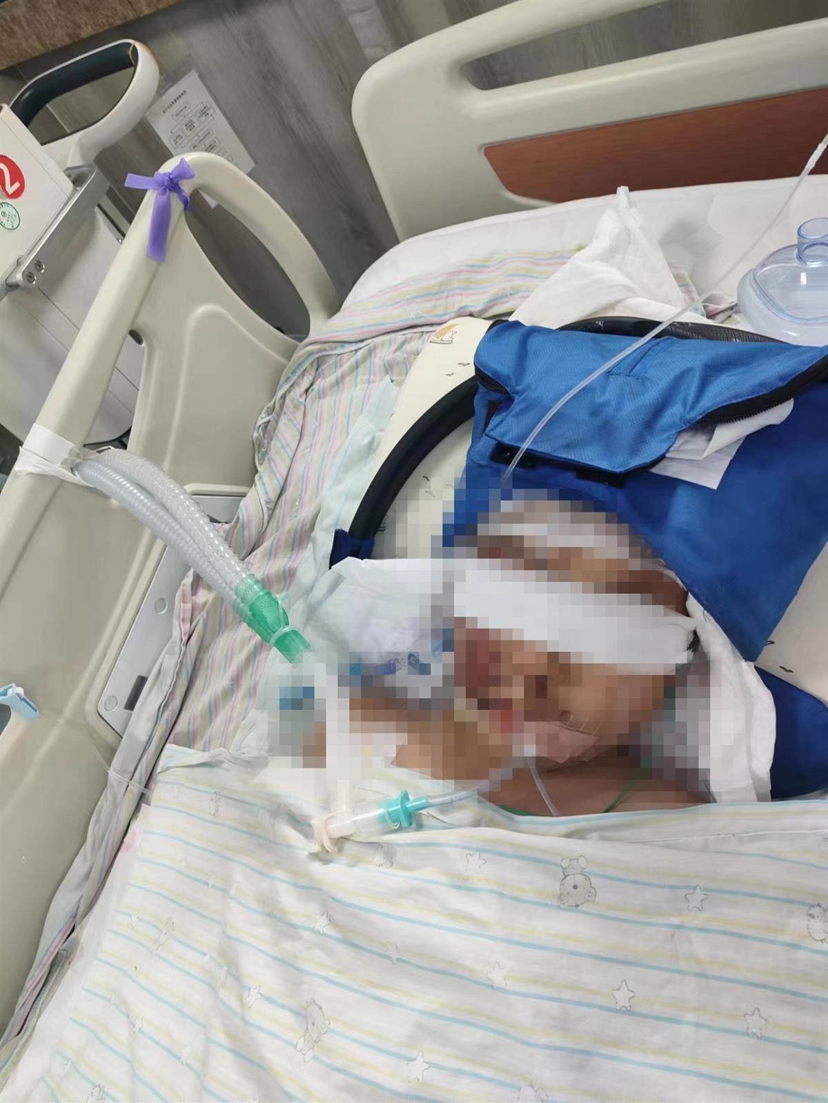 在ICU接受救治的赫赫。 受访者供图