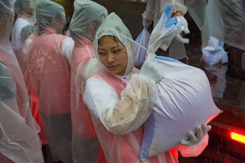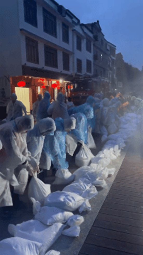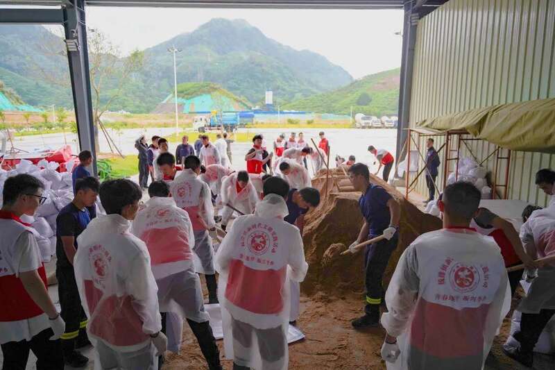 “加快速度装好沙包!”“一个一个往后传!”按照钱排镇政府的统一部署,在保证安全的前提下,200余名学生志愿者参与沙袋填装、搬运和堆叠等台风防御工作。