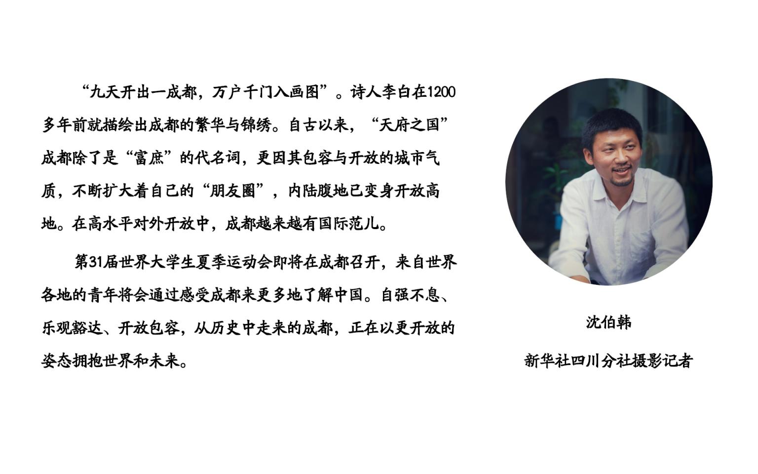成都市是四川省省会,所在的成都平原自古有“天府之国”的美誉,是首批国家历史文化名城。大运会的举办,让成都更具“国际范”。