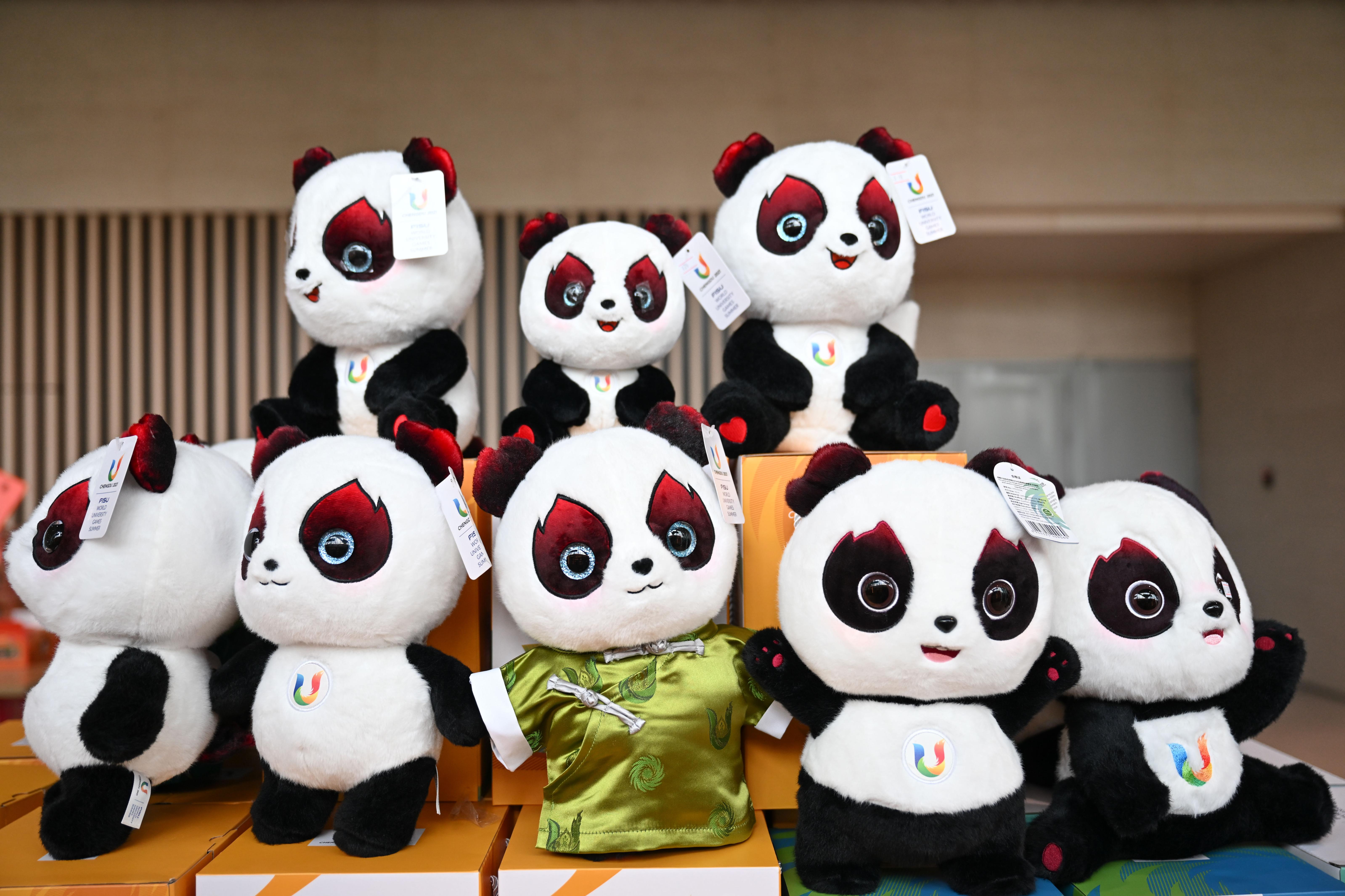 这是在成都大运会成都博物馆官方特许商品零售店内拍摄的“蓉宝”公仔(7月18日摄)。新华社记者 胥冰洁 摄