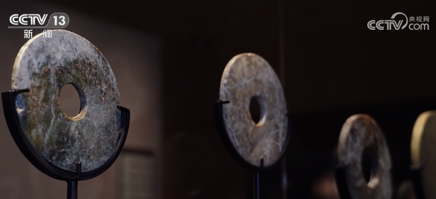 总台记者 朱睿祺:继续往里走,就可以看到以玉器为专题的展厅“玉魂国魄”。良渚先民围绕对神的崇拜,设计出了一套用以区别阶层、标识身份、反映等级的玉礼器系统。在这里,大家能找到杭州第19届亚运会吉祥物“琮琮”的原型——玉琮,还有第4届亚残运会的吉祥物“飞飞”的原型——良渚神鸟。