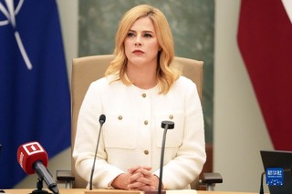 9月15日,拉脱维亚总理埃维卡·西利尼亚在里加主持新政府第一次全体会议。新华社发(亚尼斯摄)