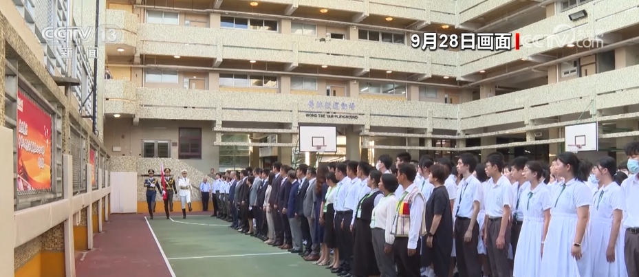央视网消息:为庆祝中华人民共和国成立74周年,9月28日,香港培侨中学邀请解放军驻香港部队三军仪仗队来校为全体师生举行升国旗仪式。培侨中学是新中国成立后首批升起五星红旗的香港学校之一,从那时起,升国旗的仪式在培侨中学代代相传,迄今已经延续了74年。