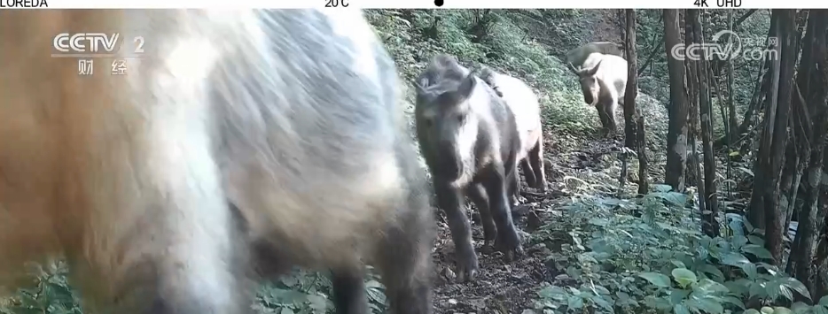 在8月、9月的几段视频里,四川羚牛们集体出游,他们沿着兽径悠闲地散步、觅食。发现相机后,有的回头张望、有的驻足观察。