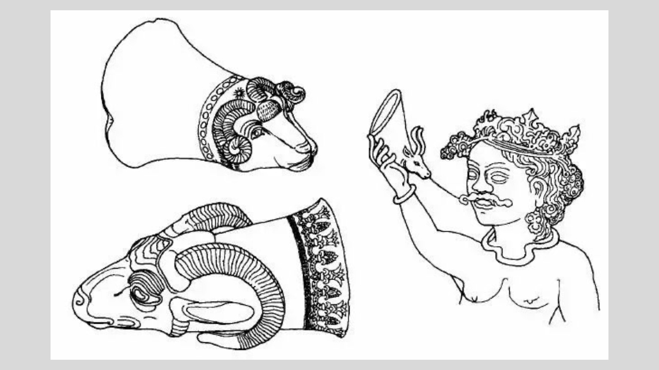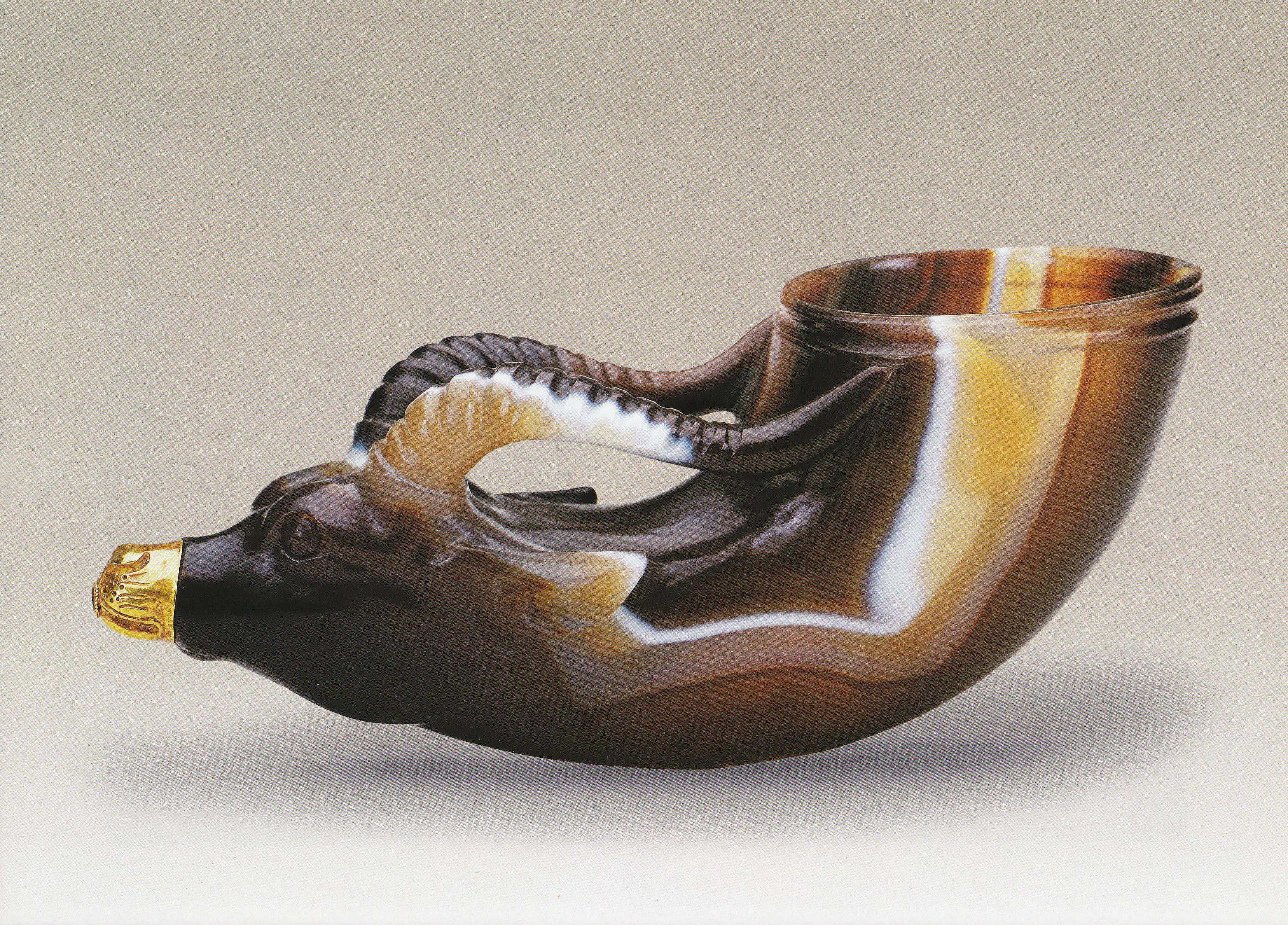 △唐兽首玛瑙杯 陕西历史博物馆藏 西安何家村窖藏出土,是国内发现的罕见来通实物,反映了来通已经进入了唐代皇室或贵族的生活之中。