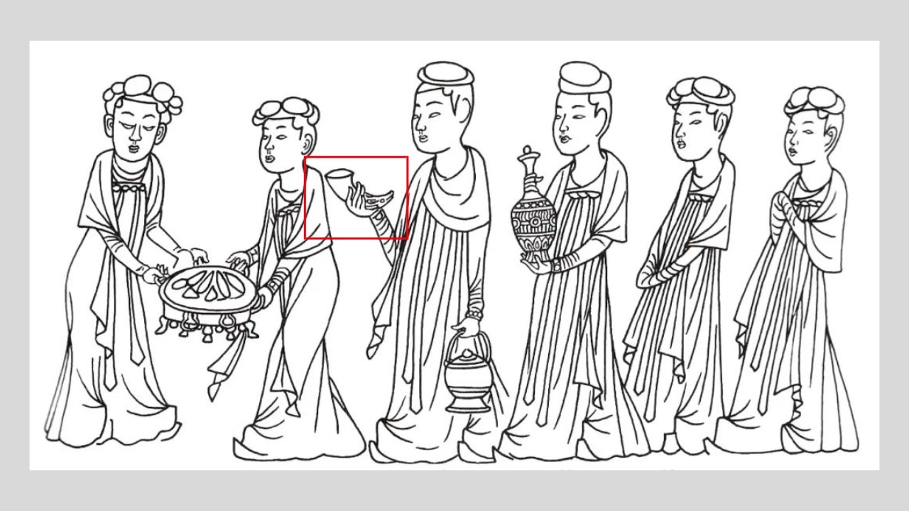△河南洛阳烧沟61号西汉墓壁画中持角杯而饮的人物形象