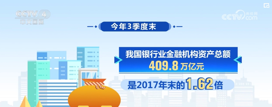 目前,中国已建成全球最大的银行体系,第二大保险、股票和债券市场。最新数据显示,2023年三季度末,中国银行业金融机构资产总额为409.8万亿元,是2017年末的1.62倍。