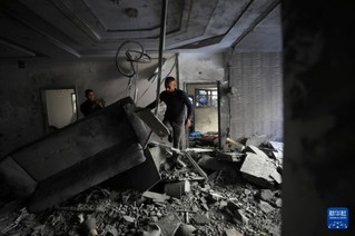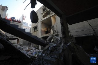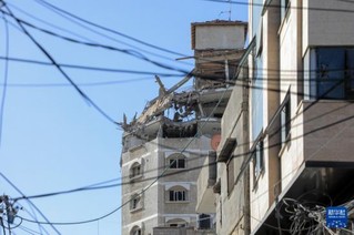 这是12月24日在加沙地带南部城市汗尤尼斯拍摄的以军袭击后的受损建筑。新华社发(里泽克·阿卜杜勒贾瓦德摄)