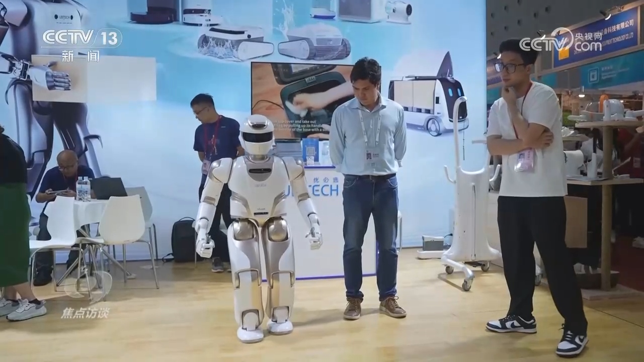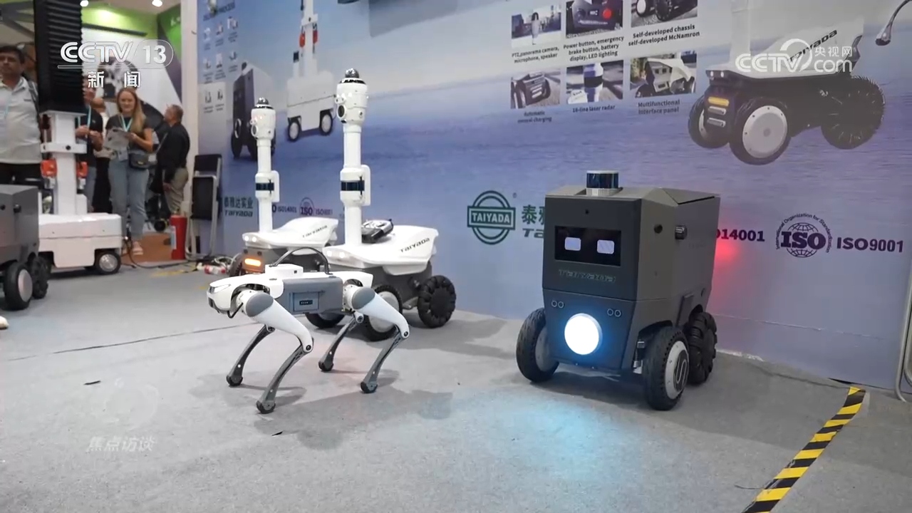 一个被众多采购商围观的展位,正展示着他们的新产品:活泼的机器狗。它不仅可以用于居家陪伴,还可以用于巡逻记录。不仅有机器狗,这家企业还带来了具备其他功能的国产机器人。