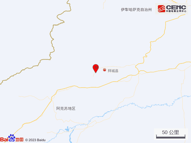 央视网消息:据中国地震台网微信公众号消息,据中国地震台网正式测定,1月5日23时37分在新疆阿克苏地区拜城县发生4.1级地震,震源深度18公里,震中位于北纬41.77度,东经81.58度。