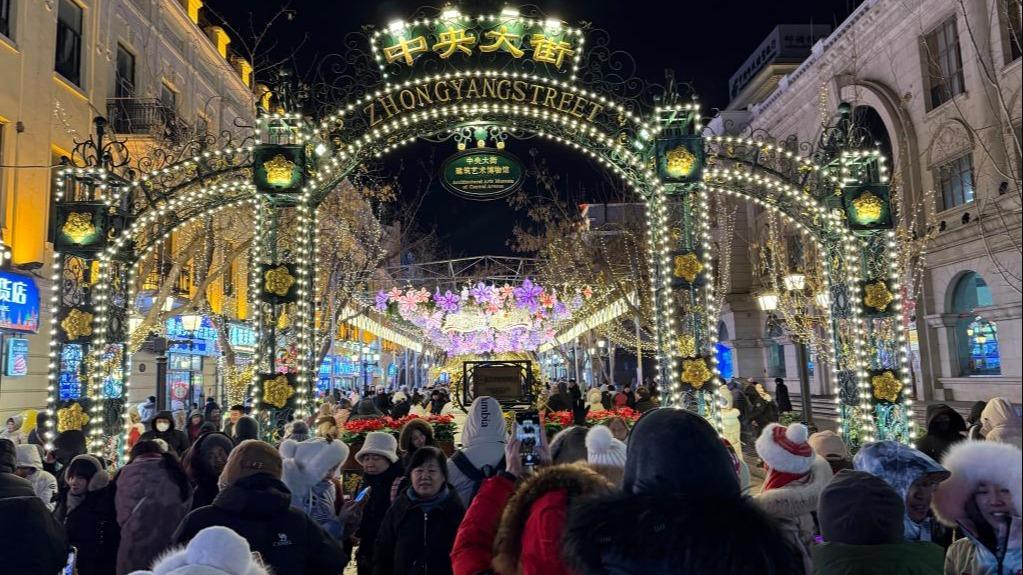 2024年12月26日,哈尔滨中央大街游人如织。新华社记者 杨思琪摄