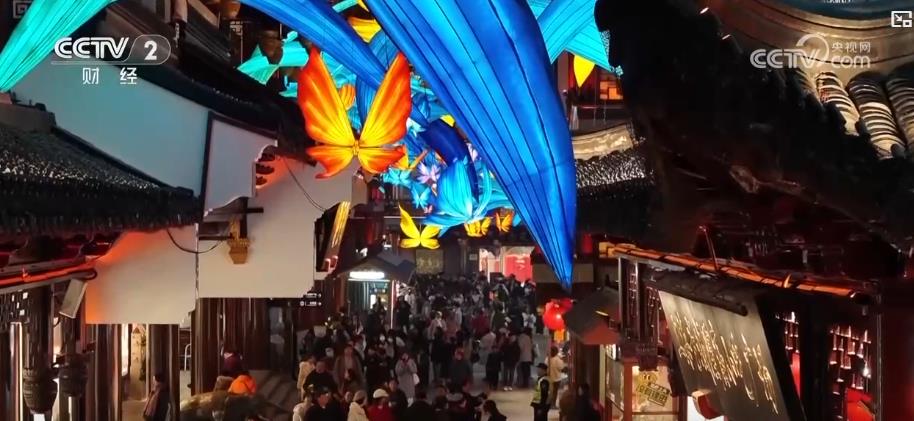 春节期间,上海推出百余项文旅活动。南京路、淮海路、豫园等10个重点商圈联合举办新春折扣促销优惠活动。在“南京路新春市集”,汇聚了各式各样的文创展示摊位,传统手工艺品琳琅满目。境外游客不仅可以体验民俗小吃和文化互动场景,还可以参与多轮商圈通用消费券发放活动;豫园商圈打造的灯会庙会让外国游客们在园林建筑中感受独特的“海派民俗”。
