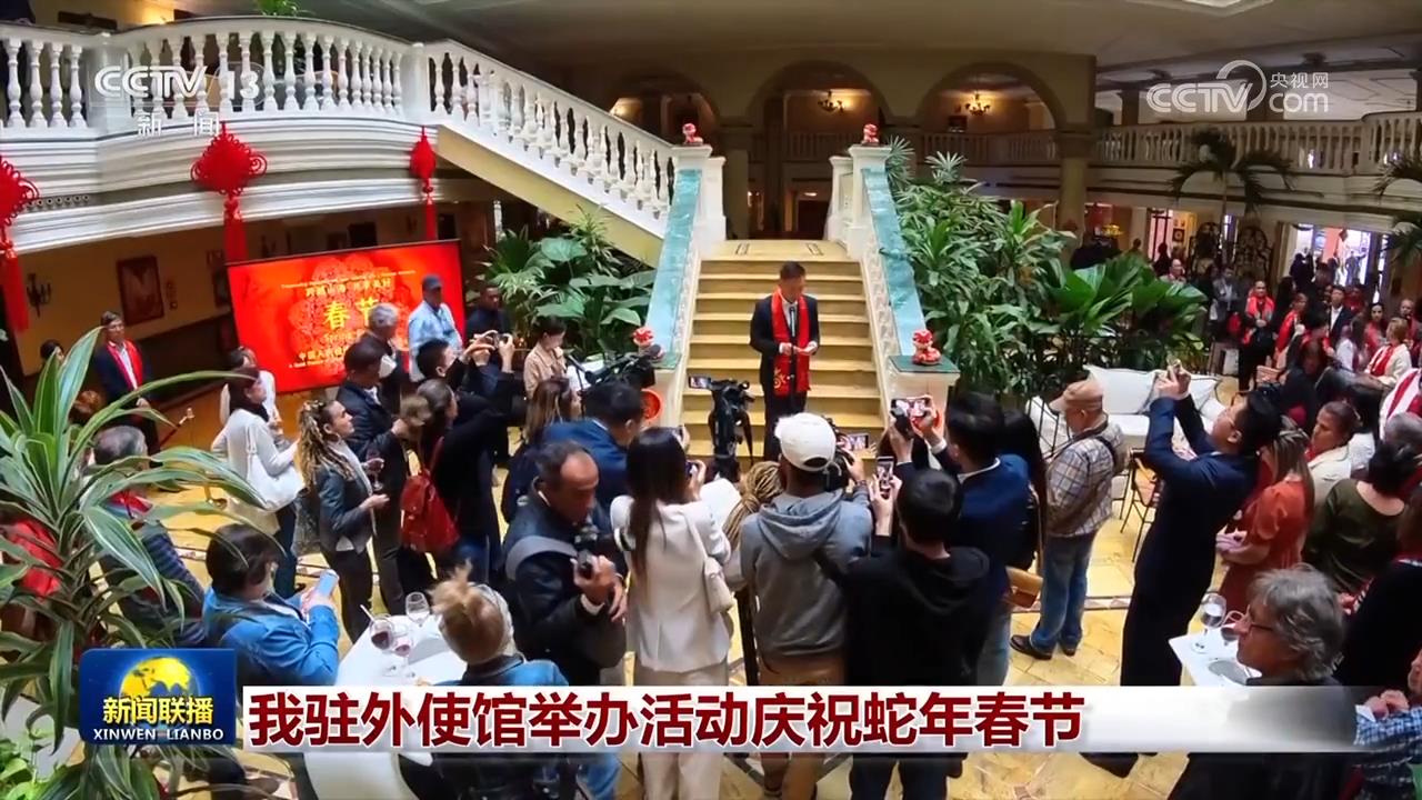 央视网消息(新闻联播):连日来,我驻多国使馆举办春节招待会等丰富多彩的活动,与各界人士和当地民众共庆蛇年新春佳节。