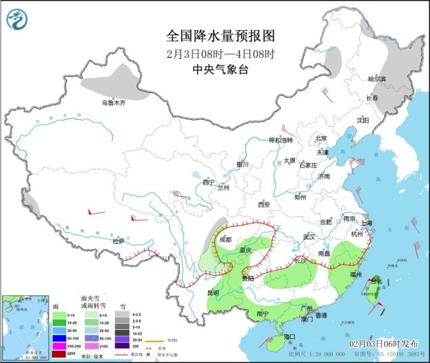 另外,未来24小时,南方降水趋于减弱,新疆北部、内蒙古东北部、黑龙江中东部、吉林中东部、川西高原北部等地部分地区有小雪或雨夹雪,西藏西部、山东半岛等地部分地区有中雪。明天白天至夜间,新疆西部、西藏西部等地部分地区有中到大雪,局地暴雪(10~19毫米)。
