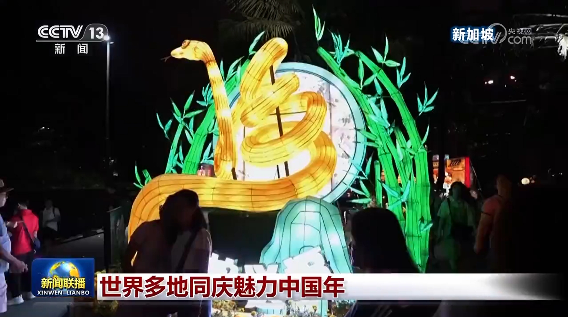 第39届“春到河畔”大型春节庆祝活动在新加坡滨海湾花园举行。活动期间,28组大型灯饰布置在花园的擎天树四周。寓意好运与繁荣的“金蛇送福”灯饰、融入了科技元素的“蛇来运转”花灯深受欢迎。除了赏花灯外,现场还有送春联、猜字谜等游园活动。