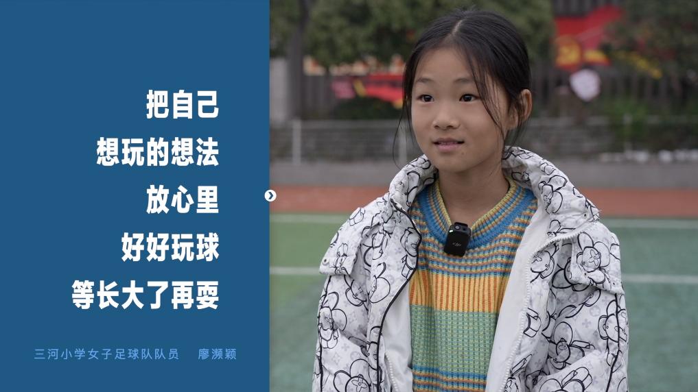 当记者问到女足队队员们,面对枯燥的集训时,是如何坚持下来的?队员廖濒颖说,“把自己想玩的想法放心里,好好玩球,等长大了再耍。”