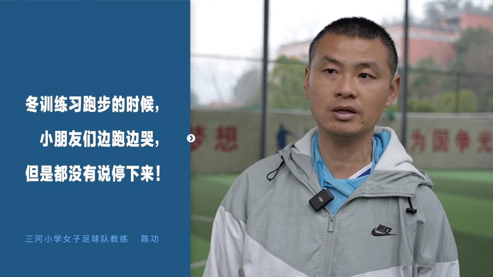 三河小学女子足球队教练陈功说,“冬训练习跑步的时候,小朋友们边跑边哭,但是都没有说停下来。”