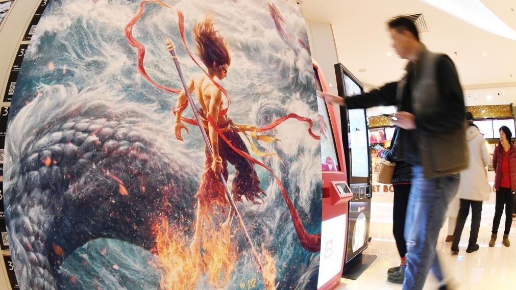 2月13日在沈阳一家影院拍摄的《哪吒之魔童闹海》海报。新华社记者 李钢 摄