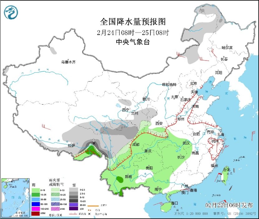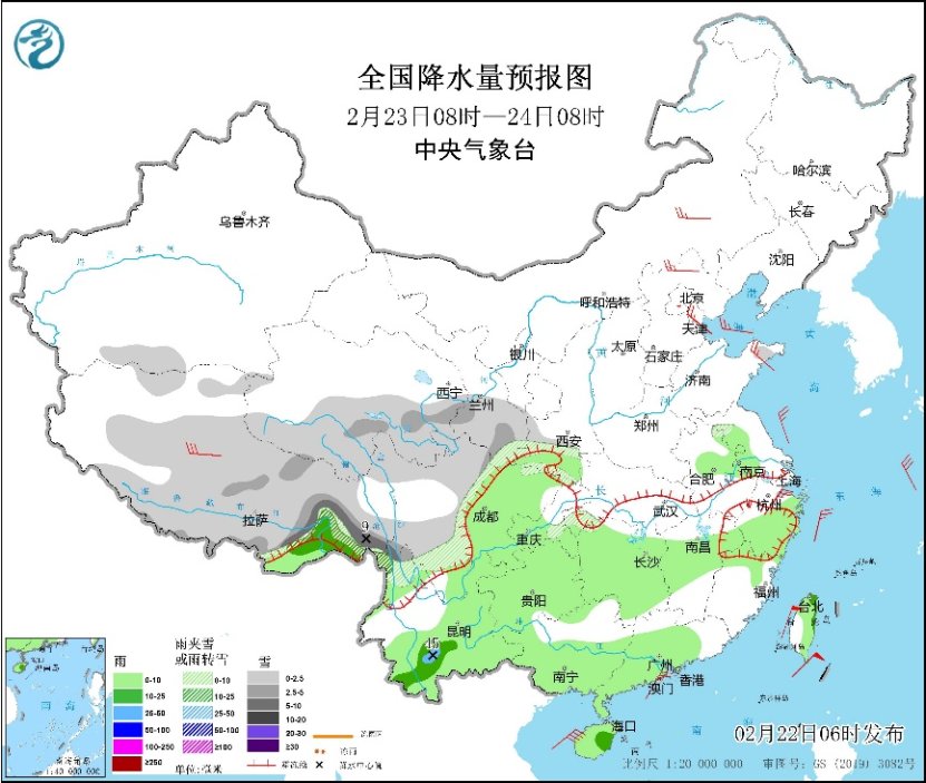预计今天,江南地区等地降雨仍将持续,湖南中部、江西北部、浙江西部、福建西北部及台湾岛东部等地有中雨,局地大雨;西藏东部和南部、青海东部、甘肃东部、川西高原东部等地有小到中雪或雨夹雪,局地大雪。