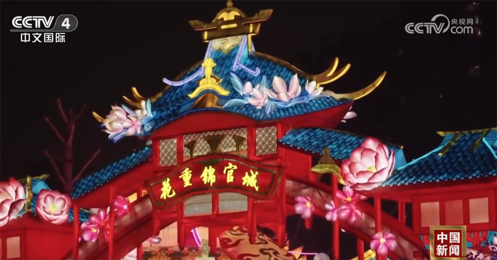 本届灯会,非遗彩灯融入了诗词文化、四季风物、成都典故等元素,用光影花卉再现了杜甫笔下“花重锦官城”的盛景。