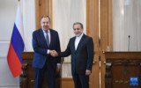 2月25日,在伊朗德黑兰,伊朗外交部长阿拉格齐(右)与俄罗斯外长拉夫罗夫出席联合新闻发布会。新华社记者 沙达提 摄
