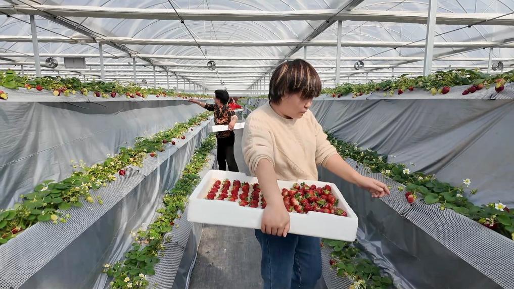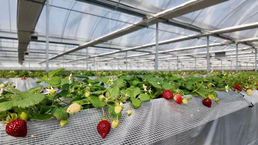 在陕西省武功县的现代化草莓种植大棚内,智能温室自动化控制系统根据草莓生长的需求,自动调控温度、光照和湿度等,为草莓提供最佳的生长环境。